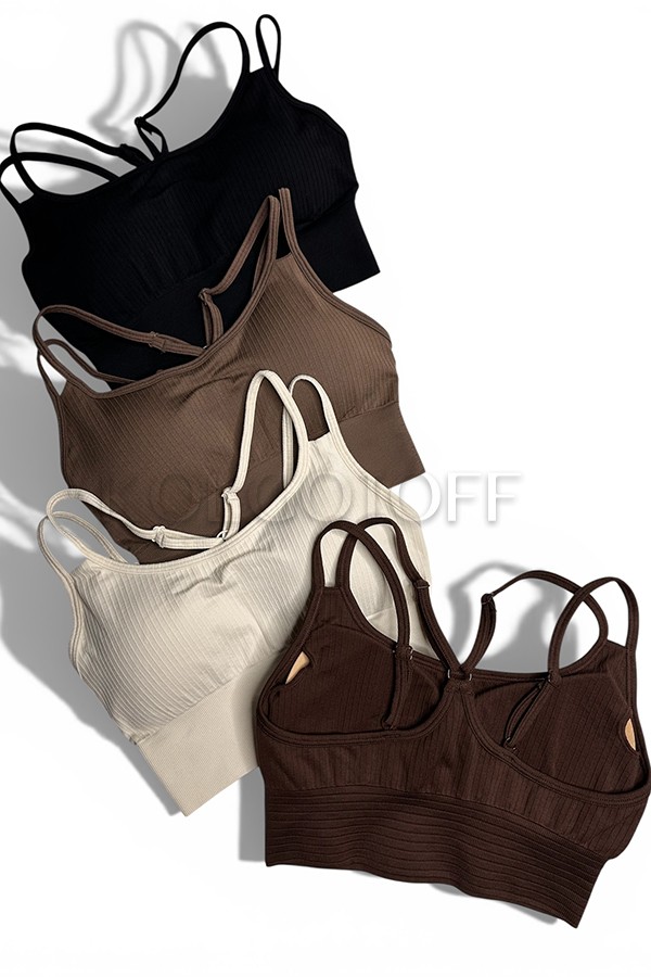 TM KOLGOTOFF TOP Define Ribbed LUXE - бесшовный спортивный топ в рубчик. Изделие выполнено из мягкой, эластичной микрофибры, благодаря этому топ обладает отличной растяжимостью и идеальной посадкой. Топ с широкой резинкой шириной 4 см. Стильное выполнение спинки в виде перекрестных регулируемых лямок. Топ имеет кармашки для чашек, а также чашки в комплекте. Изделие не брендированное.