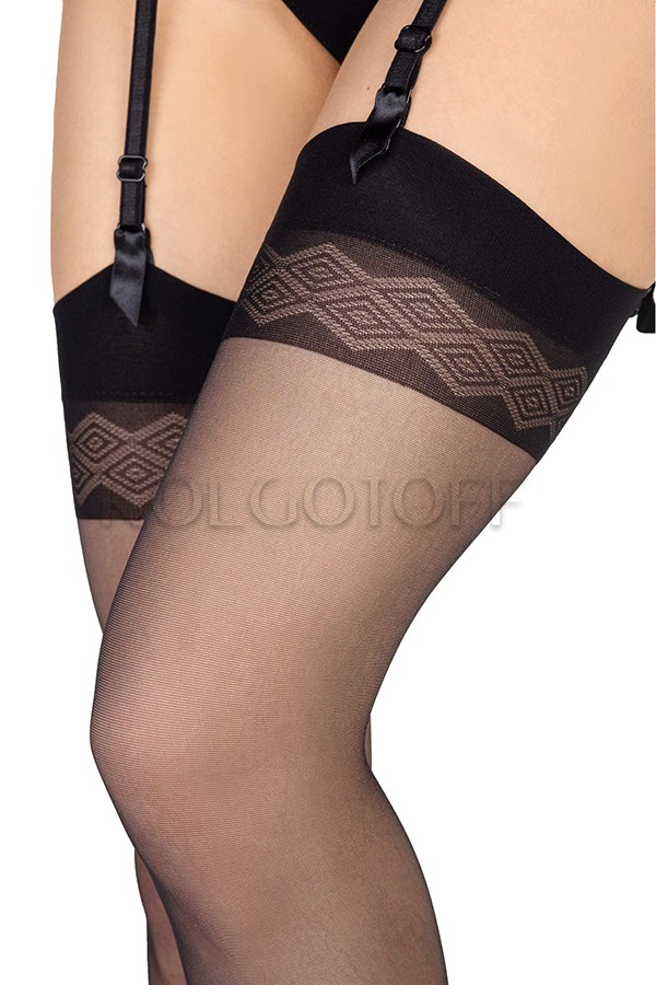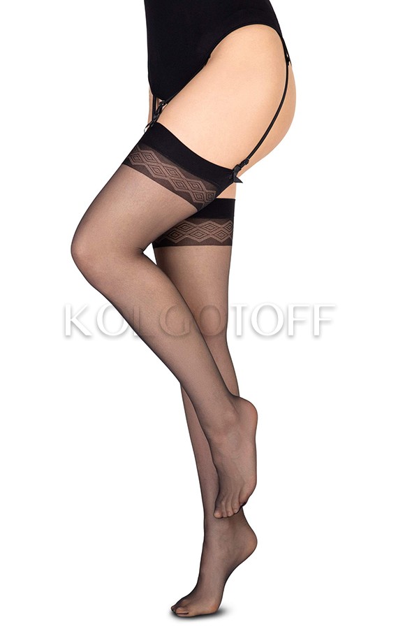 ANNES Noel 15 calze - Тонкие прозрачные чулки под пояс плотностью 15 Den. Резинка без силиконовой основы с геометрическим узором, невидимые мыски.