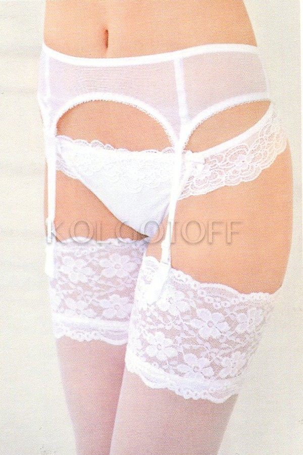 Такие чулки не имеют самодержащейся резинки и удерживаются на ноге специальным поясом