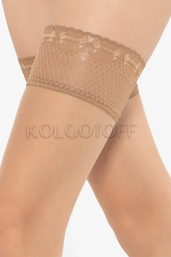 Резинка у таких чулок имеет изнутри вставку из силикона, которая удерживает чулки на ноге