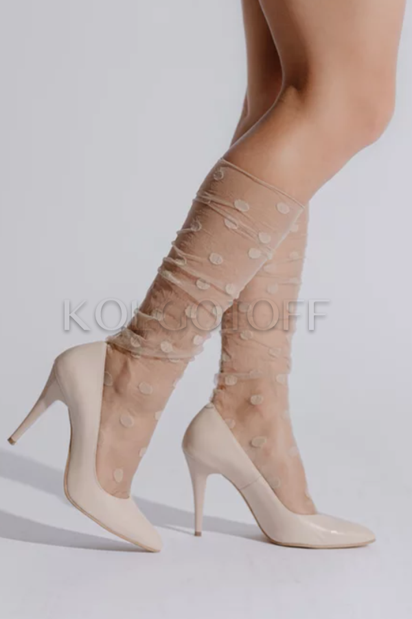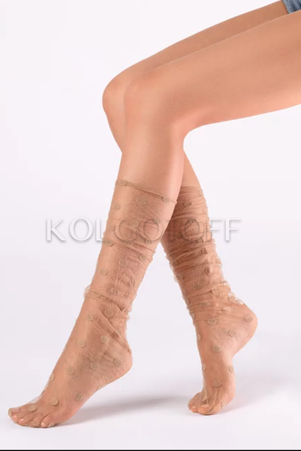 Гольфы женские LORES Pisello calzetto - модные женские гольфы с узором в крупный горох. Изделие выполнено без резинки, мыски прозрачные, упакованы по 1 паре в индивидуальной упаковке.