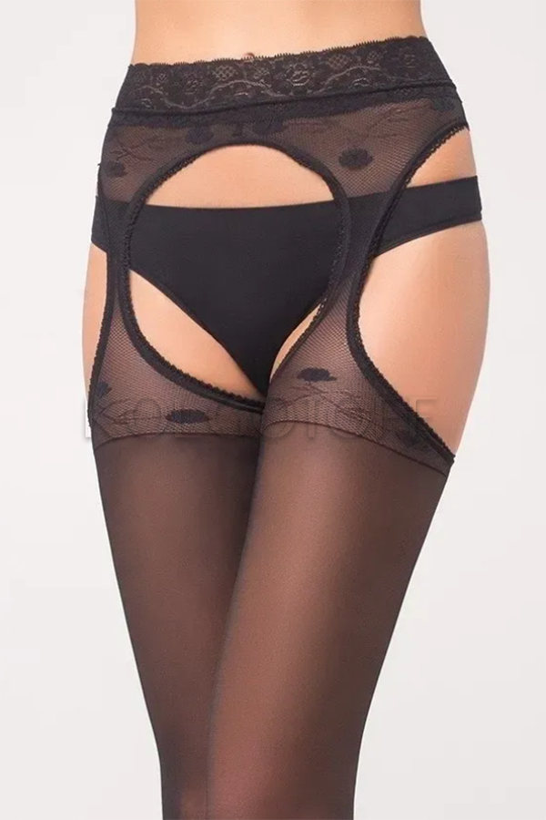 Женские колготки DOLORES Sexy 20 erotic line - матовые, шелковистые колготки типа strip-panty - имитация чулок с поясом. Комфортный пояс из мягкого кружева с элегантной цветочной вышивкой. Невидимые мыски.