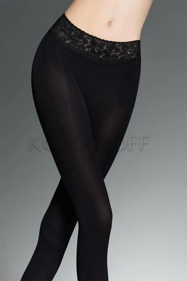 Оригинальные плотные, матовые колготки из микрофибры с заниженной талией и изумительной кружевной резинкой на талии. Колготки не скользят и не скручиваются в верхней части, дарят дополнительный комфорт обладательнице данного изделия. Однородные по всей длине, без шортиков. Комфортные плоские швы, гигиеническая хлопковая ластовица и невидимые мыски.