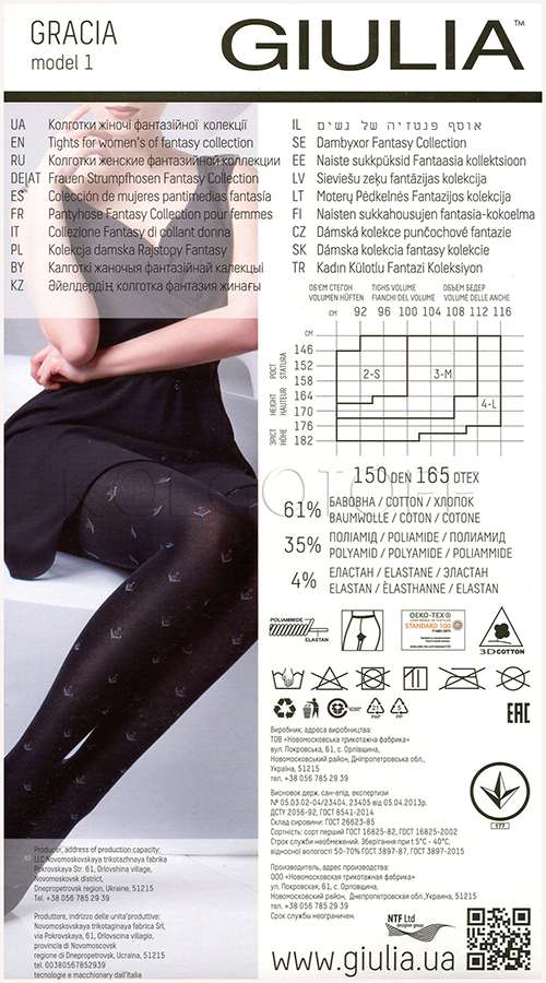 В технологии ЗD с хлопком нить провязана в каждой петле ряда, что позволяет полотну растягиваться во всех направлениях и достигать облегания 'второй кожи'. Колготки с ЗD обладают одинаковой эластичностью по длине и ширине, что обеспечивает максимальную свободу движений и удобство. Плотная облегаемость колготок с ЗD снижает опасность спуска петель. Их четкость и стабильность позволяет создавать различные стили и фактуры - от совершенно прозрачных до матовых, текстурированных и узорных.