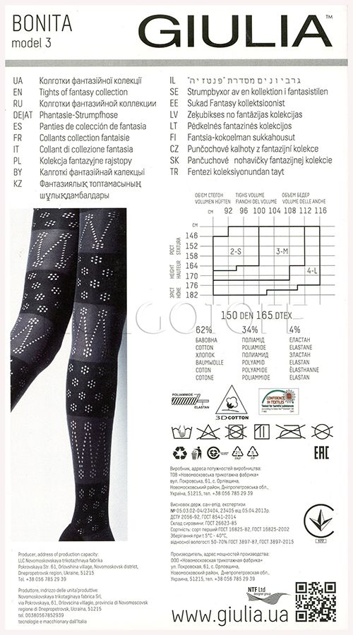 Женские тёплые колготки с большим содержанием хлопка и просветным узором по всей ноге. Комфортный широкий пояс, плоские швы, хлопковая ластовица и уплотнённые мыски.