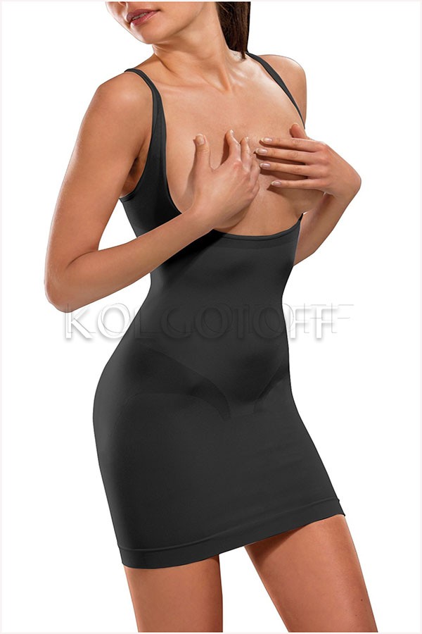 Моделирующие платье-грация из плотной, нежной миерофибры с корректирующим эффектом, с глубоким вырезом под грудью, бретельки можно регилировать по высоте плеча. Максимальная коррекция по всей длине: утягивает живот, моделирует линию талии и бёдер, приподнимает ягодицы и создает вычерченный стройный силуэт. Модель иеет высокую степень компресии.