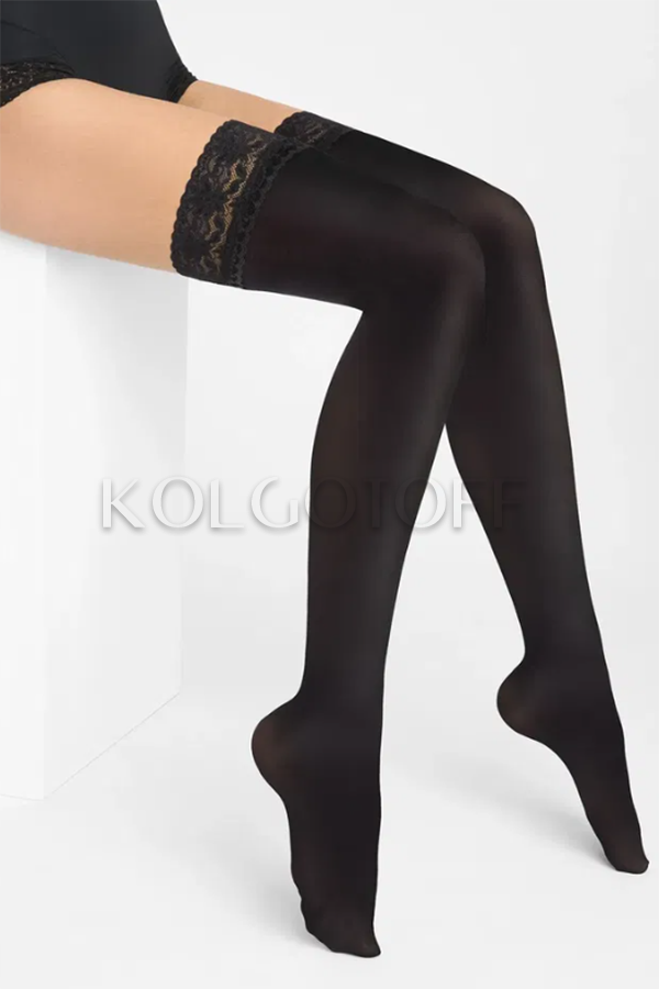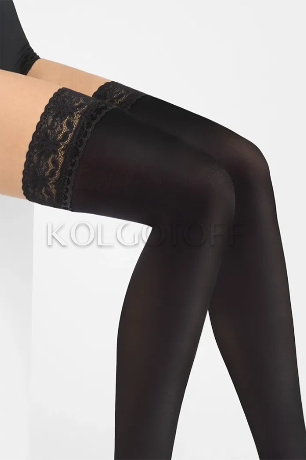 Чулки MARILYN Chance 100 - плотные женские чулочки из не прозрачной матовой микрофибры с кружевной каймой на силиконовой основе. Резинка имеет ширину 9 см.