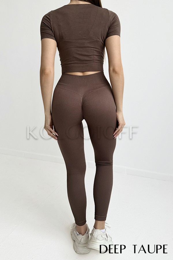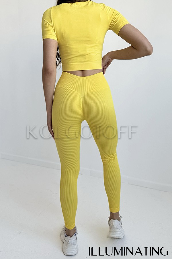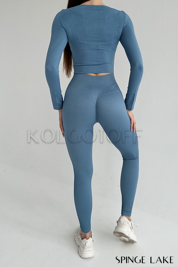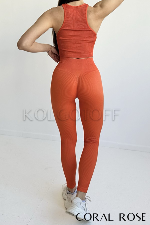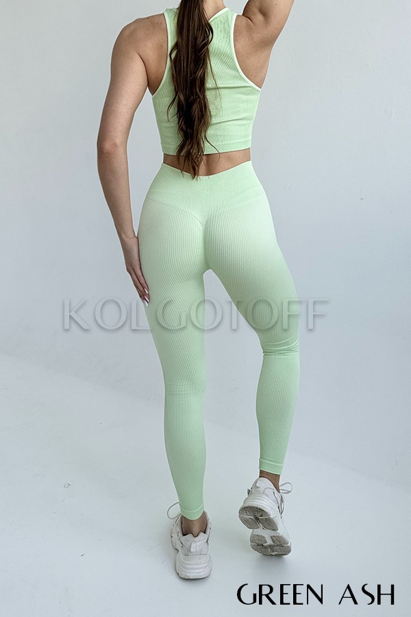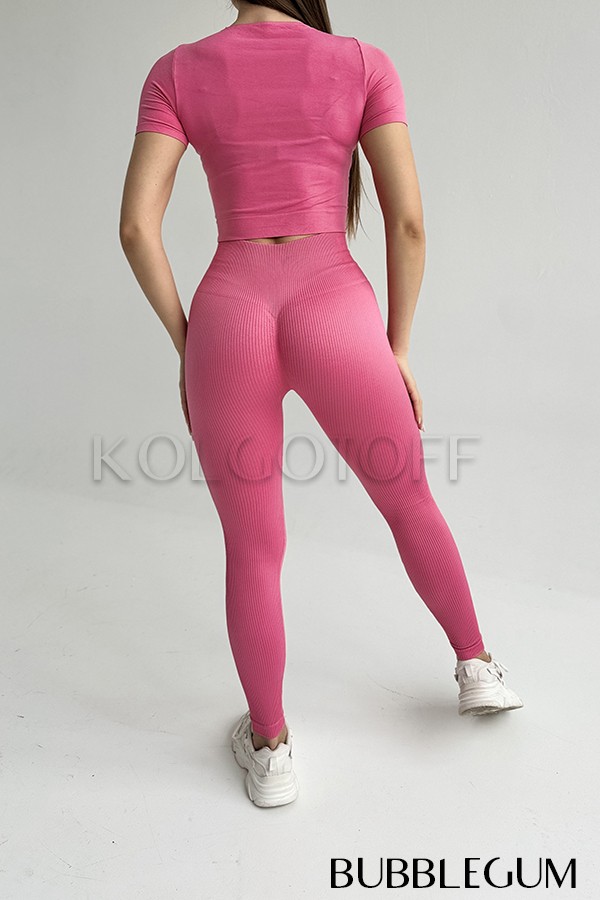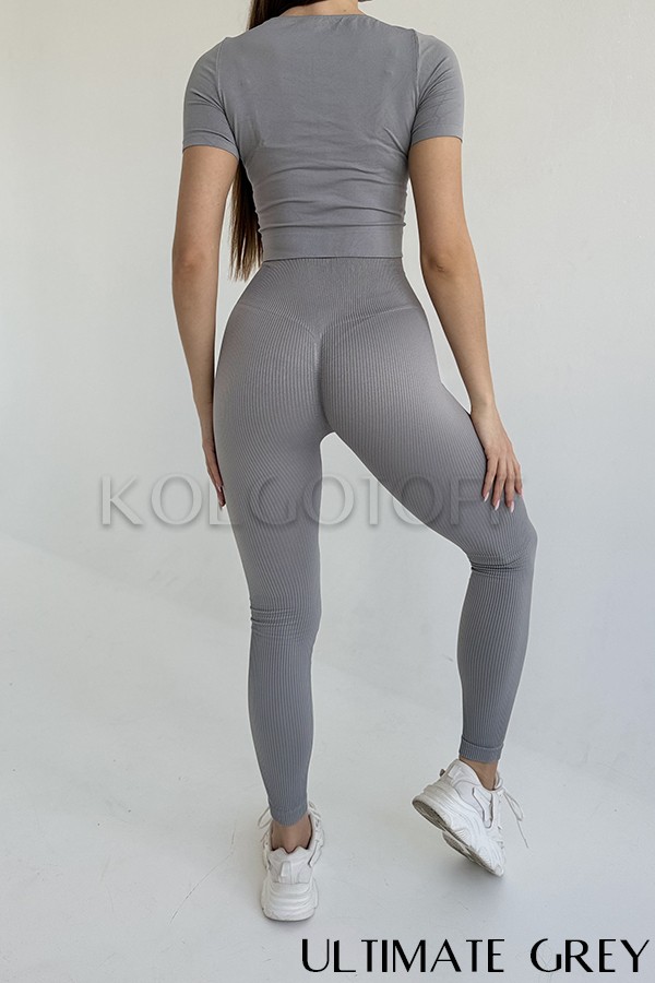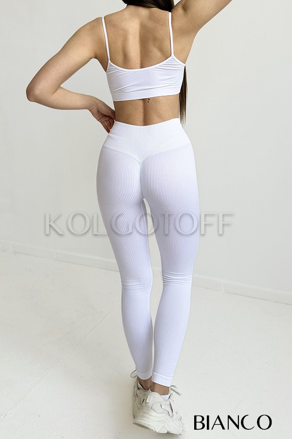 Еластичні жіночі безшовні легінси з м'якої мікрофібри в рубчик з широким комфортним поясом і ефектом пуш-ап. Виріб не брендований, без фірмової упаковки.