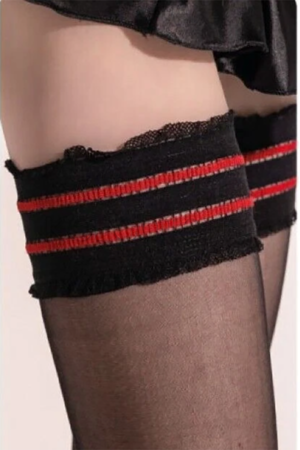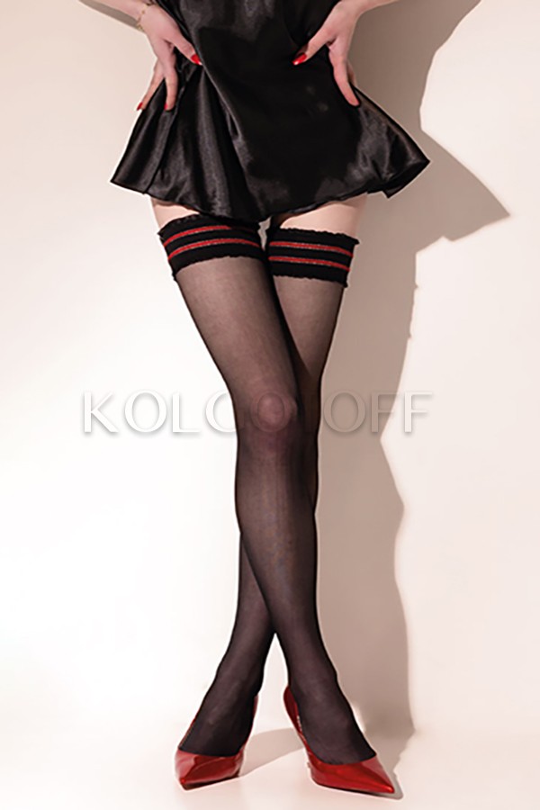 DOLORES Alessandra 40 - спокусливі жіночі панчохи з кольоровою резинкою мереживною шириною 7 см. Прозорі миски.
