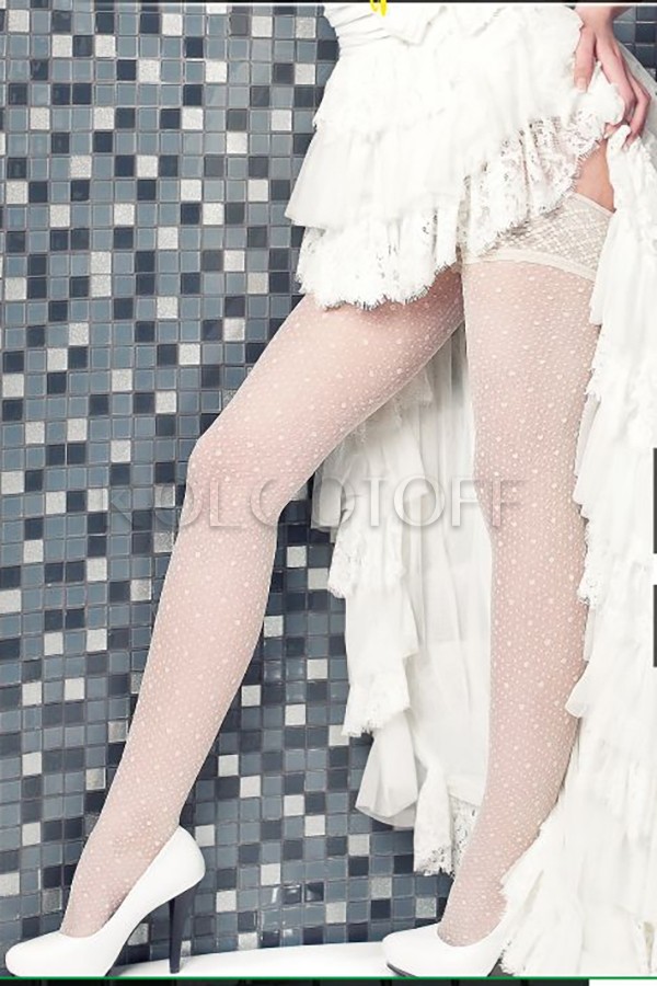 DOLORES Lucia 20 - жіночі сітчасті панчохи з візерунком у вигляді розсипу великого та дрібного горошку. Мереживна гумка на силіконовій основі, ширина мережива 8 см. Миски не виділені.