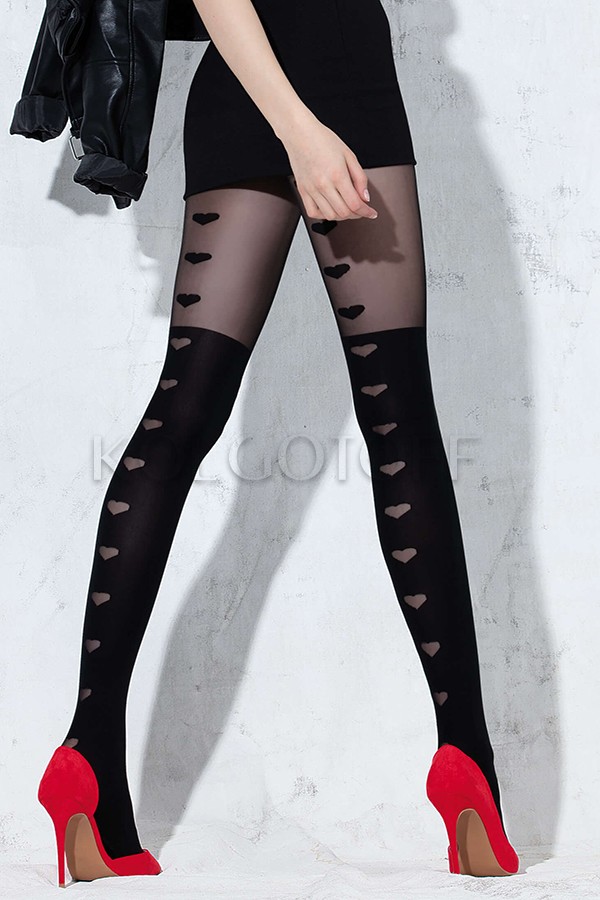 KNITTEX I am In Love 50 – модні жіночі колготки з м'якої 3D мікрофібри з імітацією ботфортів. По всій задній поверхні ноги розташований візерунок у вигляді серця середнього розміру. В області імітації візерунок просвітний, у верхній частині тканий. Комфортний пояс, плоскі шви, бавовняна ластка і не виділені миски.