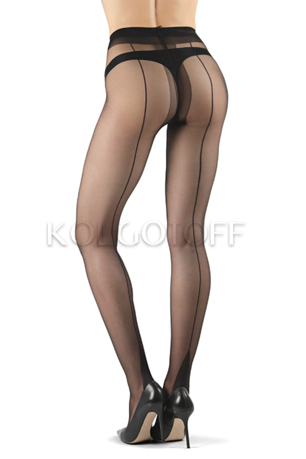 Вишукані, сексуальні колготки прикрашені елегантним швом ззаду, що переходить у візерунок "пірамідальна п'ята". Тонкі, матові. Без шортиків, з гігієнічною бавовняною ластівкою, плоскими швами та прозорими мисками.