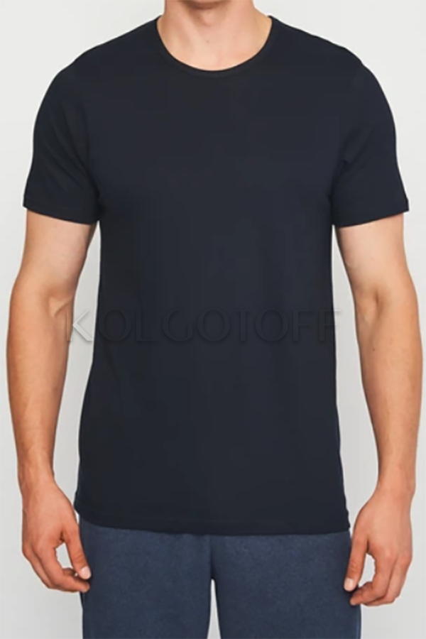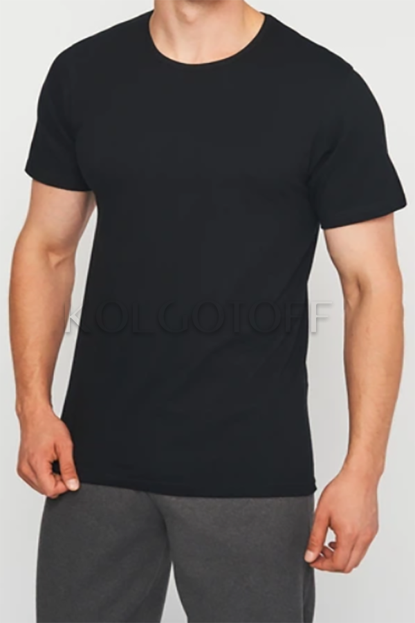 Чоловіча однотонна футболка класичного крою, з короткими рукавами і круглим вирізом. Без бічних швів. 100% бавовна.