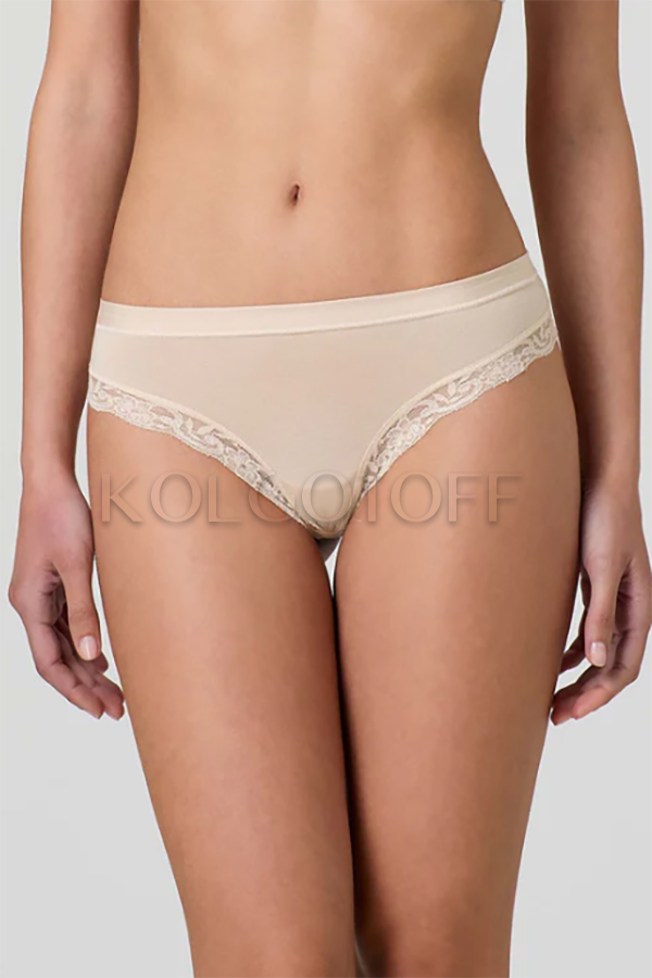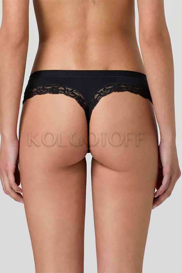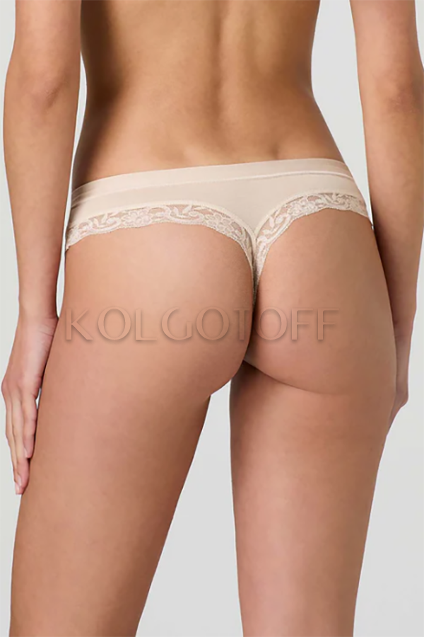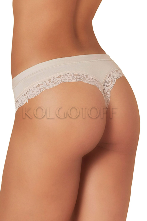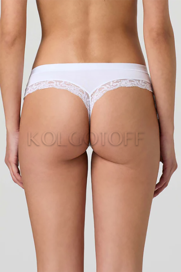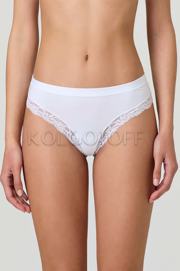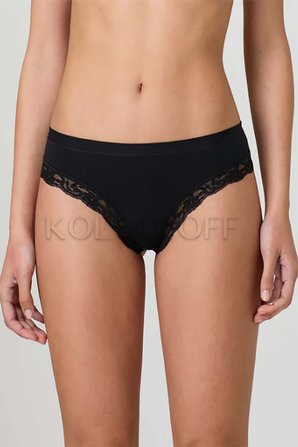 Чарівні трусики-стрінги з ніжної бавовни та модалу. Занижена талія, зручний широкий щільний пояс, обробка ефектною широкою мереживною тасьмою, бавовняна ластівка.