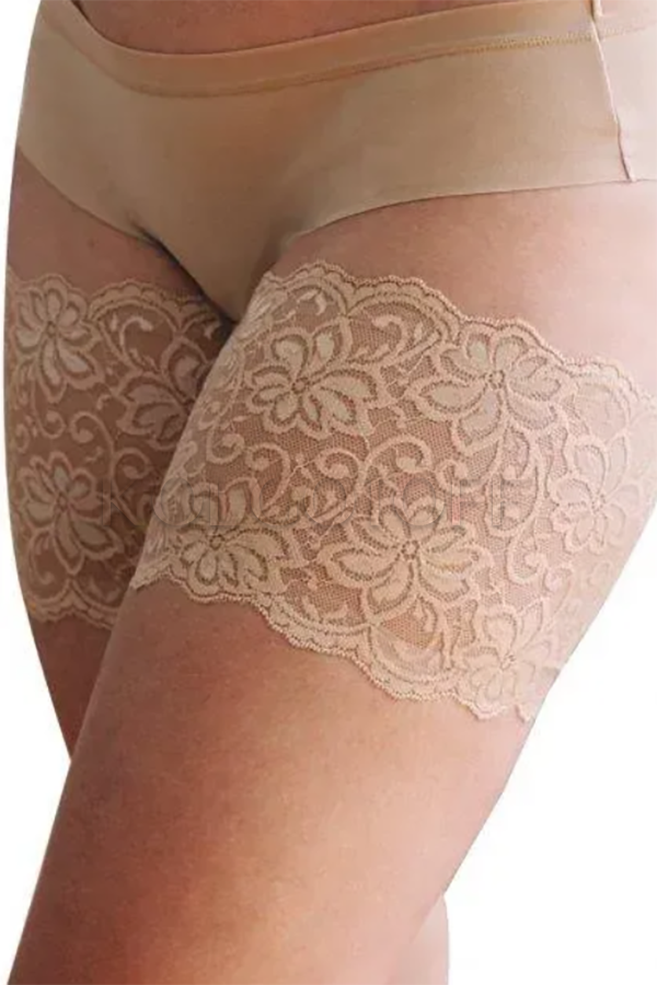 DOLORES BANDALETTES LACE - еластична мереживна стрічка на стегна з подвійною силіконовою смужкою для фіксації. Захищає внутрішню поверхню стегон від натирання. Елегантна та комфортна в носінні. Індивідуальна упаковка.