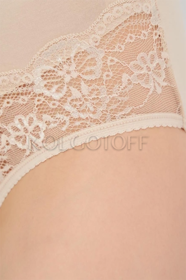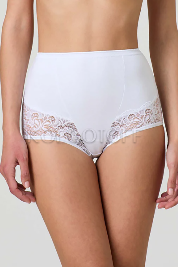 Женские трусики-слипы из классической серии COTONE Lycra. С удобной, широкой боковой частью и нежными кружевными вставками по бокам. С высокой посадкой, хлопковой ластовицей.